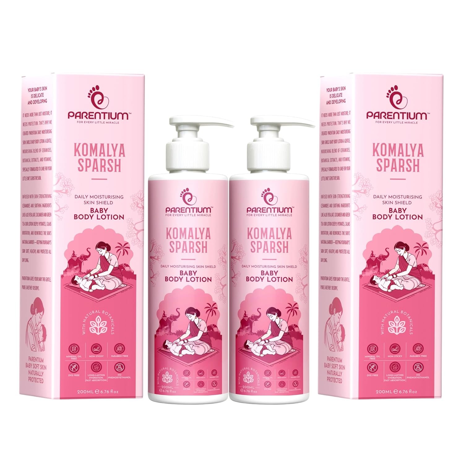Keep your baby’s skin soft and nourished every day with the Parentium Komalya Sparsh Baby Lotion Duo, a practical and value-driven set of two moisturising lotions. Designed for daily use, it provides long-lasting hydration with a lightweight, non-sticky feel.