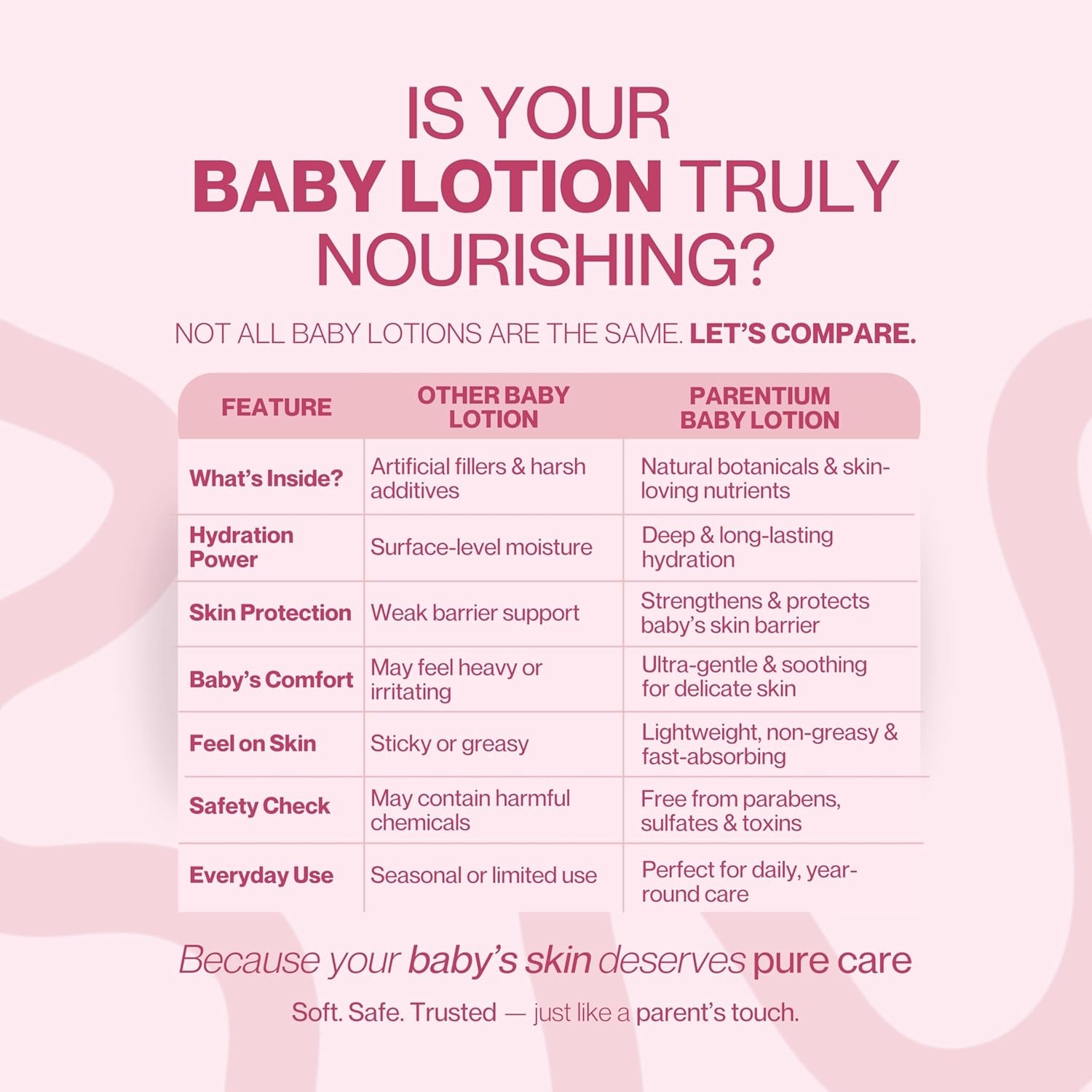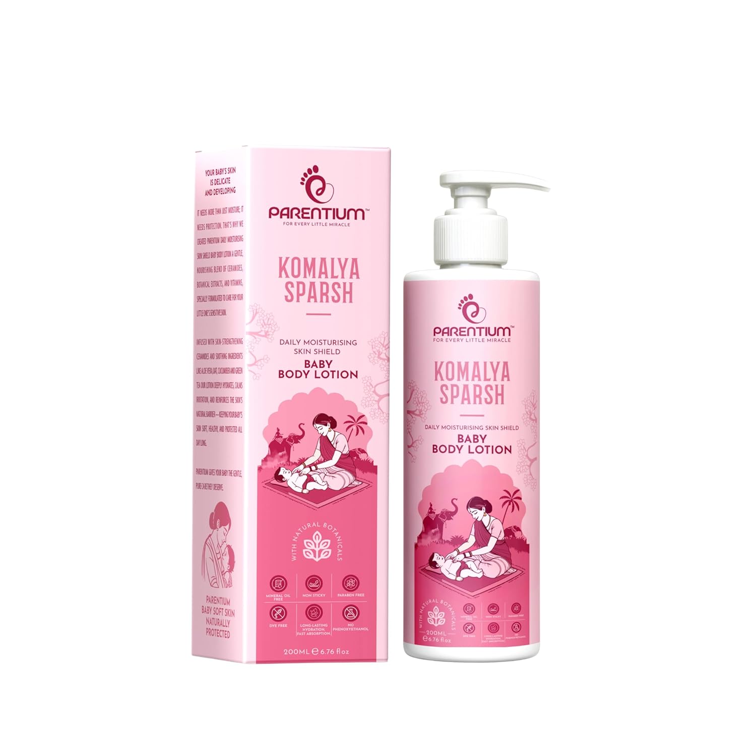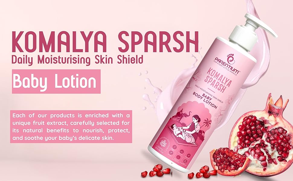 Nurture your baby’s skin every day with Parentium Komalya Sparsh Baby Body Lotion, a lightweight, daily moisturising lotion designed to provide long-lasting hydration without stickiness. Its fast-absorbing formula keeps skin soft, smooth, and comfortable throughout the day.